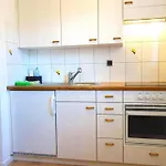 Apartment Chesa Valetta By Interhome a une kitchenette qui comprend un réfrigérateur et de la vaisselle.